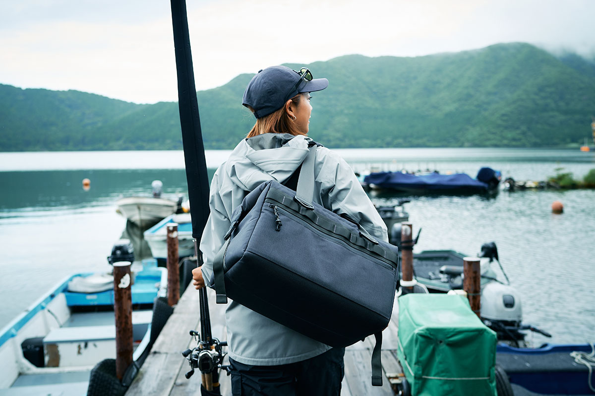 1つは、冷気の逃げやすい底面に10mm真空パネルを搭載した異次元の保冷力を誇るソフトクーラー「COOLER BAG PRO」。保冷力を示す最大氷保持期間は、Lサイズならシマノの3面真空モデルのハードクーラーにも迫る最長4日間。サイズはS(16L/35×35×22cm)、M(18L/25×43×27cm)、L(26L/35×43×27cm)。カラーはアンヴィルグレー、カーキ、チャコールの3色展開となっている。