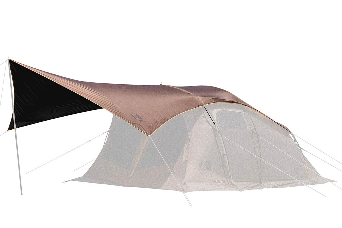 また、ポール1本で設営可能なアルテミス専用のルーフフライ一体型タープ「Artemis Roof Fly Tarp|アルテミス ルーフフライタープ」(¥22,000)も同時発売。PUブラックコーティングが施されていて、日光を90%、UVを99%カットしてくれるので、快適に過ごすことができる。